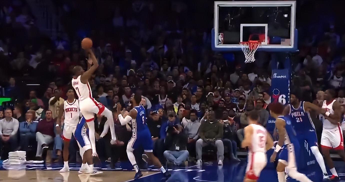 加时赛开场费城一波5-0,关键球还是杜兰特外线干拔三分球,申京篮下被乔治大帽,杜兰特边线推人被吹进攻犯规,杜兰特两个续命三分没中但火箭拼下前场篮板杜兰特两分命中,阿门继续失误比赛完结。