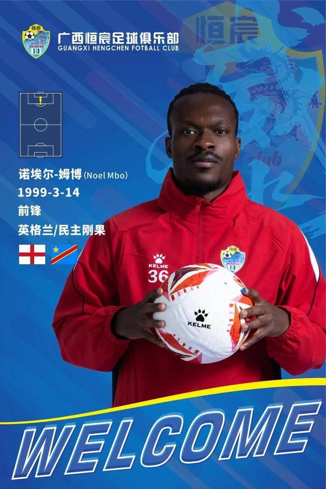 经俱乐部与球员本人协商一致,英格兰籍球员诺埃尔-姆博(Noel Mbo)正式加盟广西恒宸。未来姆博将代表广西恒宸征战各项赛事,期待他为广西足球带来更多荣誉!